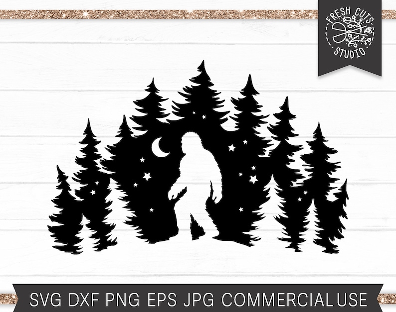Pine Tree Silhouette Svg, Bigfoot SVG Cut File for Cricut and Silhouette - Mountain Sasquatch Svg PNG for Sublimation