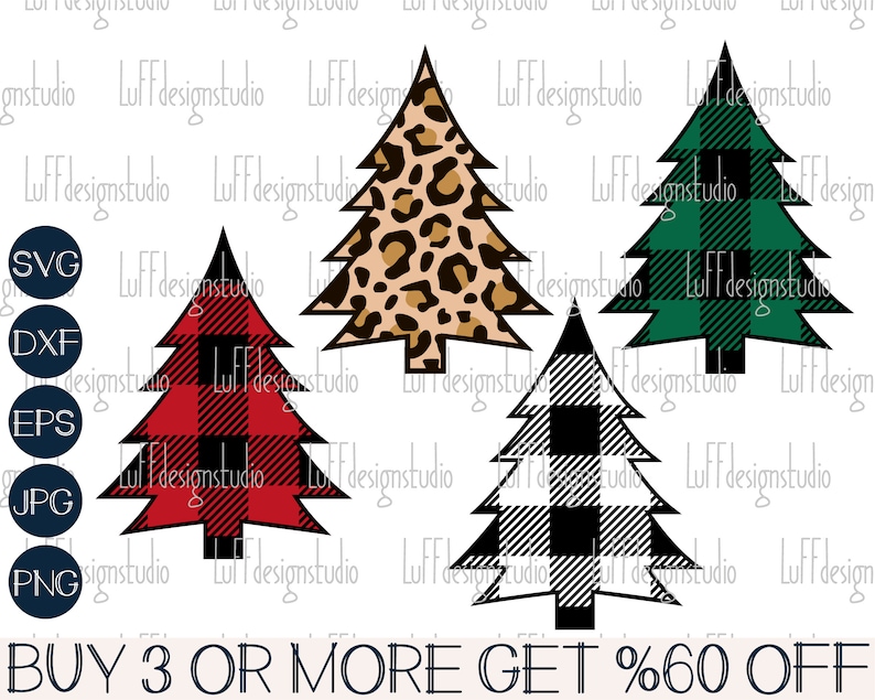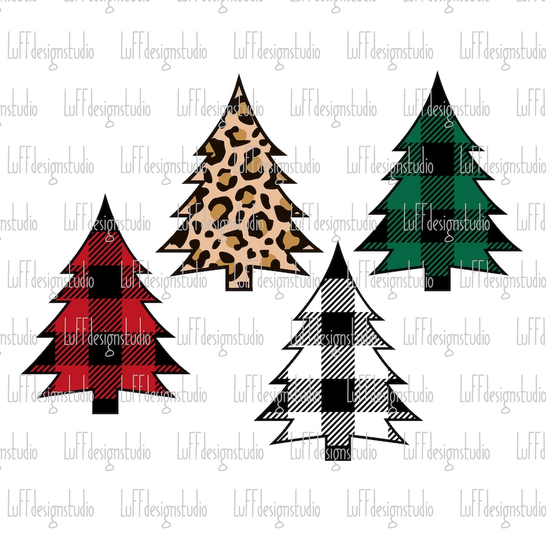 Pine Tree Svg, Christmas Tree SVG Bundle - Leopard Print SVG - Buffalo Plaid SVG